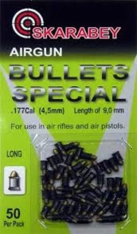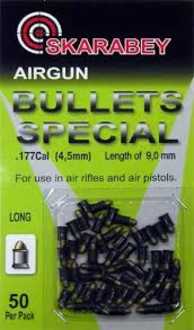 Пуля представляет собой сердечник, изготовленный из твердой латуни и заключенный в пластиковую оболочку. В отличии от пули 'специальной длинной', имеет утолщенную головную часть. Вес пули 0,62 грамма. Длина 9мм. Обладает, по сравнению со свинцовой пулей, повышенной проникающей способностью, за счет увеличенной массы, сохраняет максимум энергии на больших дистанциях стрельбы. Еще известна как 'подкалиберная'. Пули предназначены для стрельбы по различным мишеням, а также для охоты.