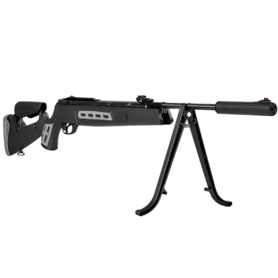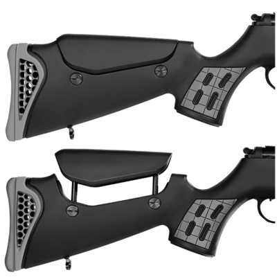 Hatsan 125 Sniper - оснащен Shock Absorber System (SAS) - система, которая поглощает отдачу и устраняет вибрацию при выстреле. Также пневматическая винтовка имеет курковый механизм Quattro Trigger, позволяющий регулировать мягкость спуска.