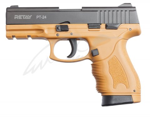 Полуавтоматический стартовый пистолет Retay PT24 является репликой знаменитого пистолета Taurus. Рамка пистолета выполнена из полимера. PT24 оснащен ручным предохранителем и системой блокировки с помощью поворота специального ключа. Часто используется армией и правоохранительными органами для обучения. Пистолет предназначен для отстрела холостых патронов.