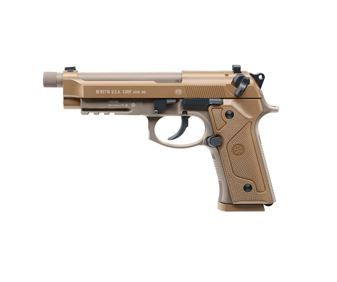 Пневматический пистолет Umarex Beretta M9A3 FDE фирмы Umarex. Компания широко известна, как производитель пневматического и газового оружия, являющегося точной копией своих «огнестрельных собратьев». Этому производителю принадлежат права на производство копий оружия от всемирно известных оружейных марок. Представленная модель полностью изготовлена из металла. Подвижный затвор с функцией Blowback. Ствол стальной, гладкий с наружной резьбой для супрессора или глушителя. Под стволом расположена планка для дополнительного оборудования. Рукоятка удобно подогнана под руку, в ней находится магазин на 15 шариков ВВ с отсеком для 12-ти граммового баллона СО2. Модель пистолета выполнена в цвете пустынного камуфляжа FDE (Flat dark earth). Вес пистолета, его безупречное внешнее сходство с боевым, тактильные ощущения, система Blowback — даст вам ощущение того, что у вас в руках легендарная боевая Beretta.