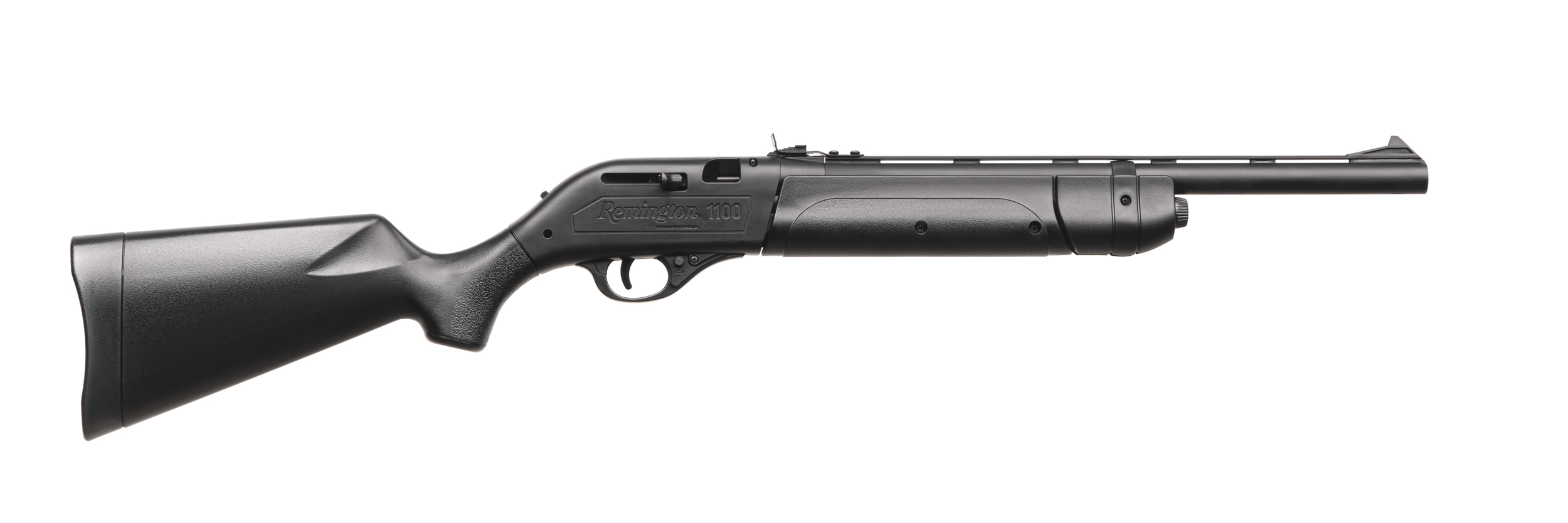 Remington R1100 основан на платформе Crosman 760. Тем не менее, он оформлен в стиле охотничьего ружья Remington Model 1100. Как и его двоюродный брат Crosman 760, Remington R1100 является мультикомпрессионной винтовкой с регулируемой мощностью выстрела, зависящей от количества "качков". Производитель показывает, что переменная начальная скорость пули может быть получена от 300 FPS с тремя "качками", вплоть до 700 FPS с 10 "качками". У Remington R1100 цевье больше, чем у Crosman 760, это обеспечивает лучший хват рычага при накачивании. R1100 может вместить до 1000 BB внутри. Они загружаются через окошко в основании приклада. При желании из пистолета можно стрелять свинцовыми пульками кал. 177. Они заряжаются отдельно через порт сбоку ствольной коробки, прямо перед рычагом взведения.