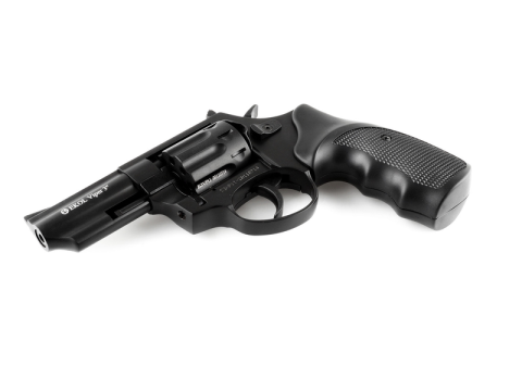 Револьвер Ekol 3' Black одна из новинок на рынке Украины. Револьвер производится известной на рынке, турецкой фирмой Ekol и является точной копией боевого оружия. Внешне револьвер очень органичен, компактен и солиден. Качественная сборка револьвера гарантирует долгую и надежную работу орудия. Все основные детали изготовлены из стали- это ствол, 9-ти зарядный барабан и спусковой механизм. Корпус выполнен из силумина. Удобная, ребристая, пластиковая рукоять приятно и удобно ляжет в руку и обеспечит качественную и точную стрельбу. Погодные условия не смогут повлиять на работу револьвера, что позволит стрелять из него даже в мороз -30. Система взвода -двойная, что является дополнительным плюсом Ekol 3' Black.