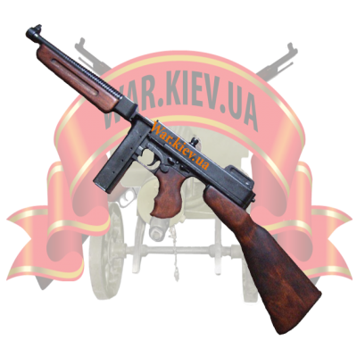 Макет пистолета-пулемета Томпсона. Деактив Нежин:прорез ствола и патронника; штифт в патроннике; срезано зеркало затвора; удален ударник; срезана губа магазина; Функция взвода и щелчка при спуске оставлена