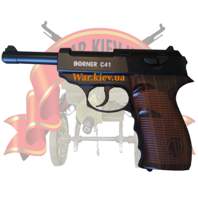 В некоторые моменты нашей жизни, у нас возникает дежавю. Так вот, глядя на пистолет Borner C41 вполне может возникнуть такое чувство. И это абсолютно нормально, так как по своему виду он напоминает старый добрый боевой пистолет Вальтер Р38, который был распространен еще в 1938 году. У Borner C41 материал основы и корпуса метал, что доводит его вес до 900 гр. и делает приближенным к боевому пистолету. У пистолета удобная рукоять, она рифленая, а значит, не соскальзывает, ложиться точно по форме руки. Заряжать пистолет стоит шариками стальными омедненными (их покрывают медью, для повышения аэродинамических свойств), в магазин вмещается аж 18 штук. А баллона с СО2, который служит источником энергии, хватает на 100 выстрелов. Скорость заряда достигает до 120 м/с. Borner C41 имеет неавтоматический предохранитель, прицельный механизм не регулируется и пистолет стреляет самовзводом. Благодаря своему отличному качеству, оружие прослужит Вам долгие годы, но не забывайте также должным образом и ухаживать за ним, чистить и разряжать после каждого использования. В целом пистолет служит как для спортивной стрельбы, так и в виде развлечения, но только в мирных целях.