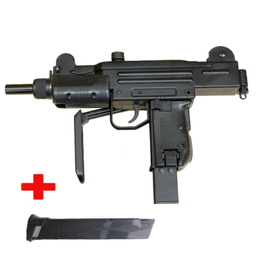 Магазин также цельнометаллический и вмещает в себя 25 шариков калибра 4,5 мм. Легкий, плавный спусковой крючок позволяет производить более прицельную стрельбу при одиночном режиме огня. В данной модели есть и режим автоматической стрельбы, что выглядит очень эффектно, благодаря функции blowback (автоматического передергивания затворной рамы при выстреле), вызывает море положительных эмоций и на некоторое мгновение может показаться, что стреляешь из боевого mini uzi.