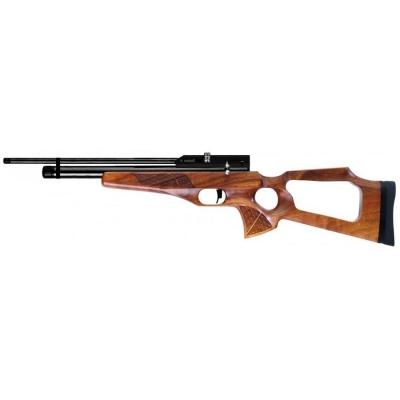 Очень оригинальный приклад изготовлен из натурального бука, оборудован вырезом для большого пальца и каучуковым, вентилируемым, регулируемым затыльником-амортизатором. Цевье интересно сужается и имеет насечки ( как и пистолетная рукоять ) для комфортного расположения винтовки в руках и снижения скольжения при выстреле из любого положения.