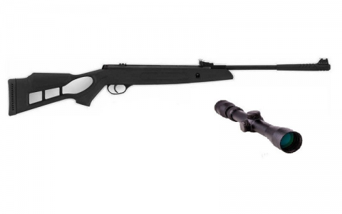 Ствол с нарезами обеспечивает мощные и кучные выстрелы со скоростью 335 м/с на хорошие дистанции, предохранитель защищает от ложного выстрела, затыльник снижает отдачу. Модель укомплектована прицелом 4х32.