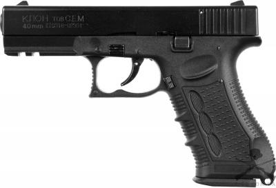 Представляем вам очередную новинку от украинского производителя компании СЭМ пистолет под патрон Флобера Клон. Внешне данный пистолет полностью напоминает глок. Переделан этот пистолет естественно конечно не из глока, а из стартового пистолета Stalker 917. Внешне никаких конструктивных изменений Не внесено. Единственное отсуствует дроссельное отверстие, нет выбрасывателя, появилась новая насечка на затворной раме перед затворной задержкой. Пистолет выполнен из следующих основных деталей: накладка на рукоять пистолета выполнена из пластика также как и пятка магазина, затвор выполнен из металлического сплава.