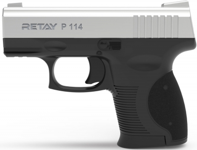 Магазин рассчитан на 6 зарядов калибра 9 мм. Затворная рама подвижна во время стрельбы, имеется рабочая затворная задержка. Звук выстрела Retay P 114 Chrome не отличается от огнестрельного пистолета, соответственно компактная модель способна произвести психологический эффект на противника. Пистолет может так же применяться для отпугивания диких животных. Кроме того, оригинальная модель может украсить любую коллекцию или же стать полезным подарком.