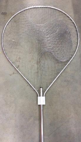 Мощный подсак для взятия крупной рыбы. Идеален для ловли с лодки спиннингом и троллингом. Имеет прочный нескладной обод из алюминиевой трубки, металлический узел крепления обода к ручке. Ручка алюминиевая, телескопическая, фиксатор выполнен из прочного пластика. Сетка выполнена из корда для теннисных ракеток или лески, в ней не путаются крючки, она обладает высокой прочностью и служит очень долго, даже при ловле крупной рыбы. Размер: голова 74 x 98 cм, Ручка 1,2 метра
