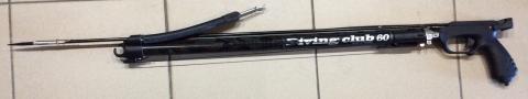 Арбалет "DIVING CLUB" - это простой и надежный арбалет с "головой" закрытого типа и аллюминиевым стволом. Угол наклона рукоятки и сама рукоятка (большая) удобные. Угол наклона рукоятки и сама рукоятка (большая) удобные. Тыльная сторона рукоятки выполнена из резиноподобного пластика, т.е. антискользящая. Саму рукоять можно выставлять под любую толщину. Скоба спускового крючка большая, что позволяет охотится с этим арбалетом в толстых перчатках. Предохранитель очень удобный, т.е. позволяет одним движением пальца его взводить или убирать, не меняя положения кисти. "Пятка" (упор для зарядки) приспущена вниз и не закрывает линию прицеливания.