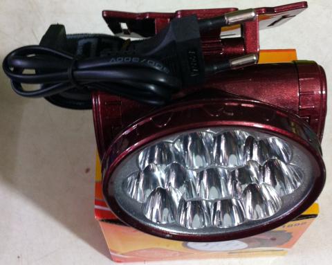 Фонарик (13 светодиодов) на голову, со встроенными аккумулятором и зарядным устройством.