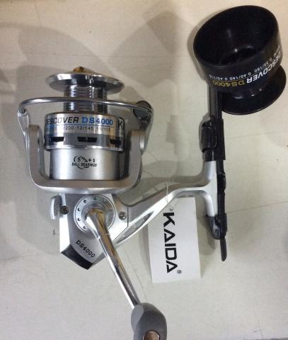 безынерционная катушка с запасной шпулей. 6 подшипников. Универсальная спиннинговая катушка 4000 (четырехтысячник). Применима для троллинга и ловли в заброс. Может использоваться и на донке с большими грузами, силовой проводке джеркбейтов. Подойдет и на удочку, хотя несколько тяжеловата. Имеет мгновенный стопор, алюминиевую шпулю с перфорацией и пластмассовую дополнительную. Задний стопор с большим диапазоном регулировки, мощная дужка лескоукладывателя. Шесть подшипников по формуле 5+1BB. Ёмкость катушки (мм/м): 0,35/180, 0,40/140, 0,45/0,110, LBS/YDS 10/200, 12/145, 15/115 лески или шнура. Ручка удобная и не проскальзывает в руке. Шпуля золотистого цвета, покрыта защитным напылением. Сама катушка черная, матовая. Имеет очень мягкий и легкий ход. Передаточное число 5.2:1. Внутренний механизм отлично сбалансирован для исключения вибраций. Переключатель режима в виде маленького рычажка расположен снизу. Выглядит стильно и надежно. Ручка может быть установлена как под правую так и под левую руку