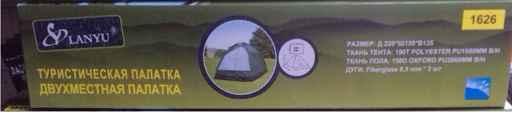 Палатка туристическая двухместная 1626 Д220*Ш150*В135