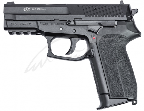 Под ствол SAS Sig Sauer Pro 2022 интегрирована планка Weaver, позволяющая оснастить модель фонарем или целеуказателем.