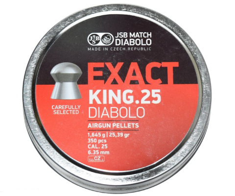 JSB Exact King - это первая модель в линейке пуль JSB Exact в .25 калибре. Разумеется, эта серия тщательно разработана, точно изготовлена, и ее качество контролируется точным ручным отбором. Мы уверены, что ваша винтовка полюбит эти тяжелые, точные и прекрасно сбалансированные чешские пули!