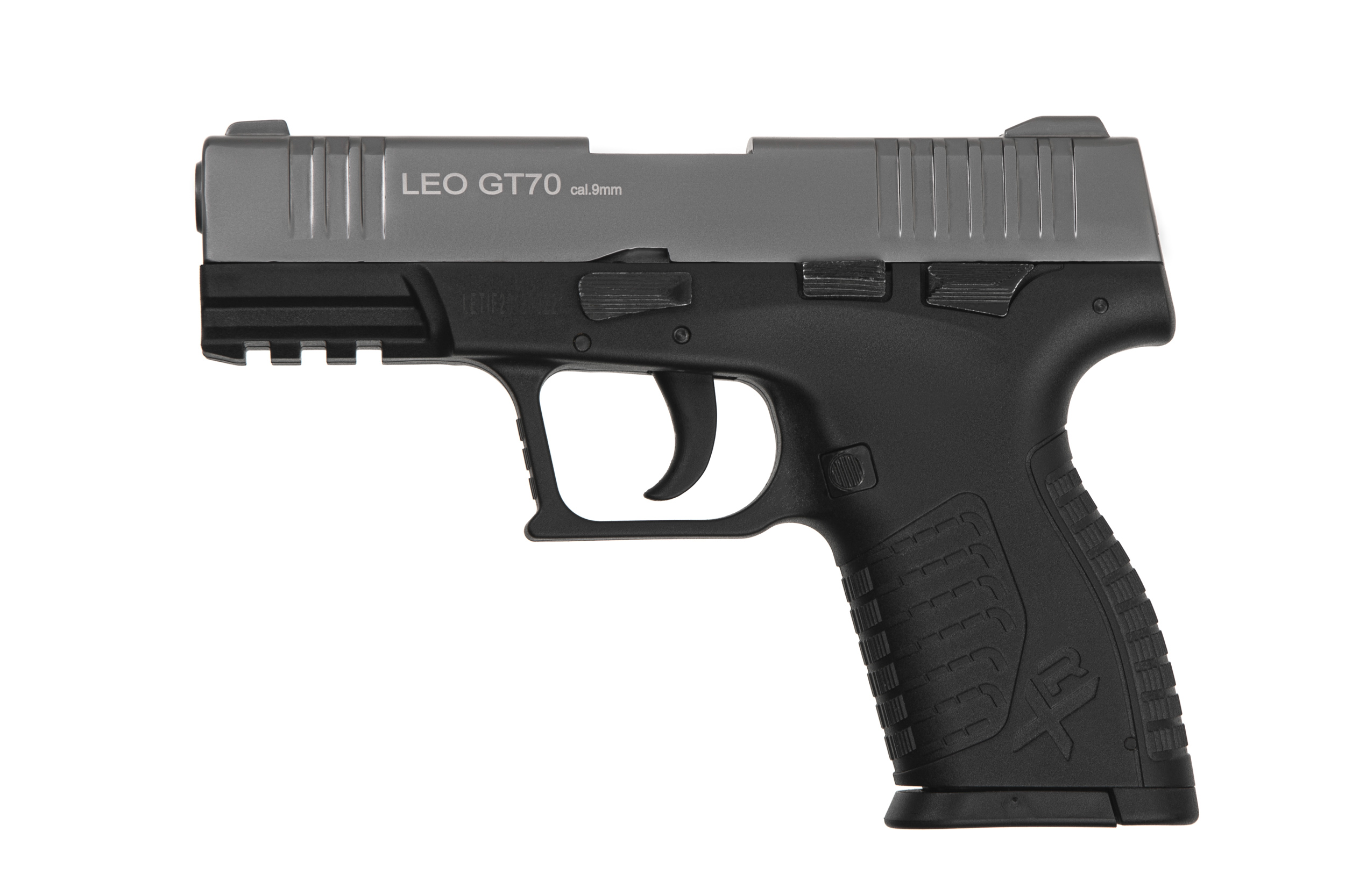 Хоть сигнальный пистолет Leo GT70 от компании Carrera Arms, и не имеет боевого прототипа, но внешне весьма схож с известным бразильским полуавтоматический пистолет Taurus PT 24/7 который в 2005г. стал пистолетом года, по версии Национальной Стрелковой Ассоциации США.Пистолет предназначен для стрельбы холостыми 9мм. патронами, имеет текстурированную анатомическую рукоять, обеспечивающую удобство и надёжность хвата, а ручной предохранитель флажкового типа предотвращает случайный выстрел. Питание боеприпасами обеспечивает двухрядный магазин на 14 патронов + 1 в стволе. В передней части рамы расположена планка Пикатинни/Вивера, позволяющая крепить дополнительные аксессуары, такие как фонарь или лазерный целеуказатель. Рама пистолета выполнена из полимера, а затвор и ствол из стали, при этом обеспечивается довольно реалистичный вес оригинала. Использовать данный сигнальный пистолет, ввиду его идентичность настоящему боевому пистолету, можно не только как стартовый при проведении спортивных мероприятий, но и для холощения, тренировок обращения с оружием и тренировках по самообороне. Громкий выстрел холостого патрона позволит отпугивать разного рода опасных животных, подавать сигналы в экстренных ситуациях, а также использовать в качестве реквизита при видео-сьёмках и театральных постановках. Пистолет поставляется в удобном для транспортировки и хранения пластиковом кейсе, в комплект входит шомпол, маслёнка и инструкция. Представлен в четырёх цветовых решениях: Чёрном, Сатиновом, Хромированном и Дымчатом.
