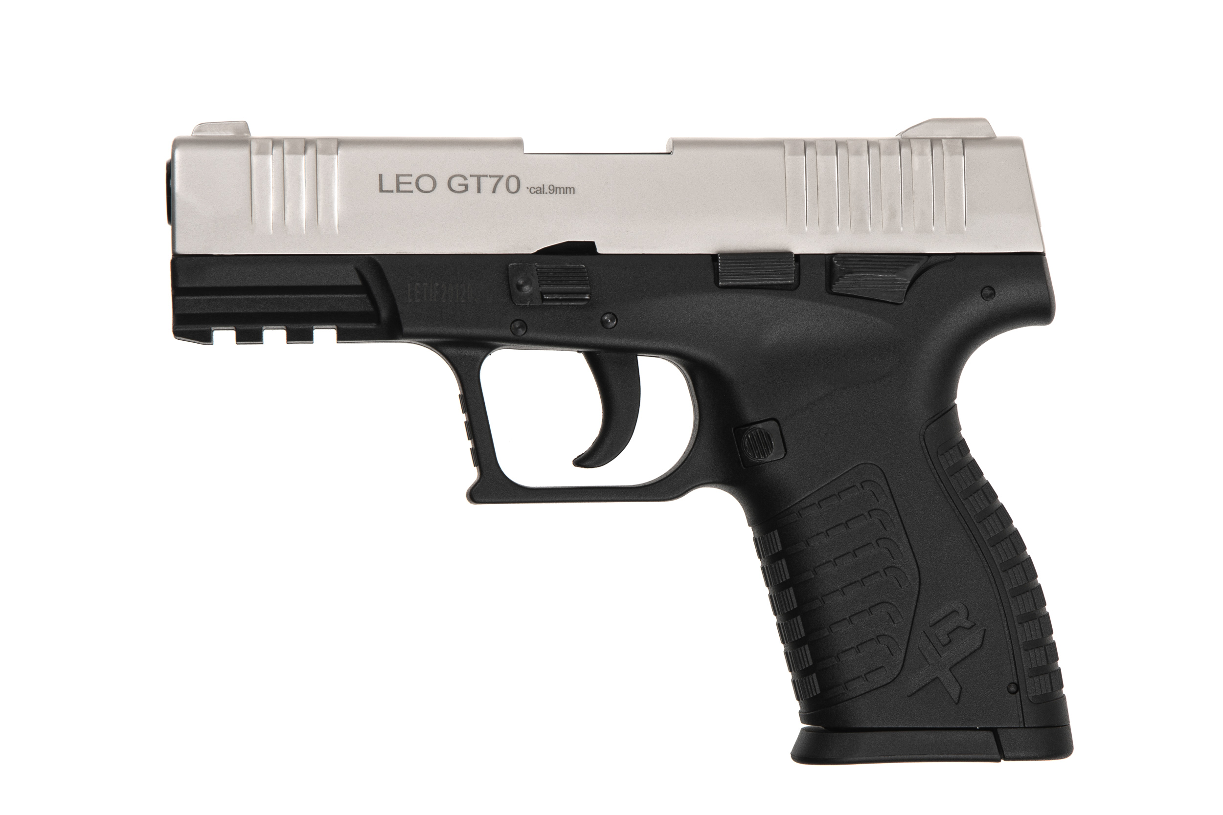 Хоть сигнальный пистолет Leo GT70 от компании Carrera Arms, и не имеет боевого прототипа, но внешне весьма схож с известным бразильским полуавтоматический пистолет Taurus PT 24/7 который в 2005г. стал пистолетом года, по версии Национальной Стрелковой Ассоциации США.Пистолет предназначен для стрельбы холостыми 9мм. патронами, имеет текстурированную анатомическую рукоять, обеспечивающую удобство и надёжность хвата, а ручной предохранитель флажкового типа предотвращает случайный выстрел. Питание боеприпасами обеспечивает двухрядный магазин на 14 патронов + 1 в стволе. В передней части рамы расположена планка Пикатинни/Вивера, позволяющая крепить дополнительные аксессуары, такие как фонарь или лазерный целеуказатель. Рама пистолета выполнена из полимера, а затвор и ствол из стали, при этом обеспечивается довольно реалистичный вес оригинала. Использовать данный сигнальный пистолет, ввиду его идентичность настоящему боевому пистолету, можно не только как стартовый при проведении спортивных мероприятий, но и для холощения, тренировок обращения с оружием и тренировках по самообороне. Громкий выстрел холостого патрона позволит отпугивать разного рода опасных животных, подавать сигналы в экстренных ситуациях, а также использовать в качестве реквизита при видео-сьёмках и театральных постановках. Пистолет поставляется в удобном для транспортировки и хранения пластиковом кейсе, в комплект входит шомпол, маслёнка и инструкция. Представлен в четырёх цветовых решениях: Чёрном, Сатиновом, Хромированном и Дымчатом.
