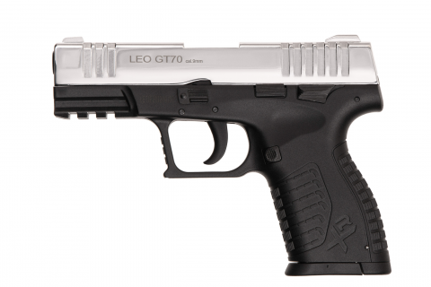 Хоть сигнальный пистолет Leo GT70 от компании Carrera Arms, и не имеет боевого прототипа, но внешне весьма схож с известным бразильским полуавтоматический пистолет Taurus PT 24/7 который в 2005г. стал пистолетом года, по версии Национальной Стрелковой Ассоциации США.Пистолет предназначен для стрельбы холостыми 9мм. патронами, имеет текстурированную анатомическую рукоять, обеспечивающую удобство и надёжность хвата, а ручной предохранитель флажкового типа предотвращает случайный выстрел. Питание боеприпасами обеспечивает двухрядный магазин на 14 патронов + 1 в стволе. В передней части рамы расположена планка Пикатинни/Вивера, позволяющая крепить дополнительные аксессуары, такие как фонарь или лазерный целеуказатель. Рама пистолета выполнена из полимера, а затвор и ствол из стали, при этом обеспечивается довольно реалистичный вес оригинала. Использовать данный сигнальный пистолет, ввиду его идентичность настоящему боевому пистолету, можно не только как стартовый при проведении спортивных мероприятий, но и для холощения, тренировок обращения с оружием и тренировках по самообороне. Громкий выстрел холостого патрона позволит отпугивать разного рода опасных животных, подавать сигналы в экстренных ситуациях, а также использовать в качестве реквизита при видео-сьёмках и театральных постановках. Пистолет поставляется в удобном для транспортировки и хранения пластиковом кейсе, в комплект входит шомпол, маслёнка и инструкция. Представлен в четырёх цветовых решениях: Чёрном, Сатиновом, Хромированном и Дымчатом.