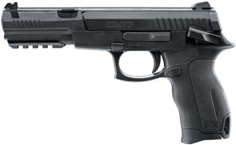 Пневматический пистолет Umarex DX17 — идеальный пневматический пистолет для развлекательного плинка. В качестве источника энергии используется витая пружина и он стреляет либо одной свинцовой пулей кал .177 так и имеет удобный встроенный резервуар на 15 шариков BB. У DX17 есть встроенная планка Пикатинни для крепления лазерного целеуказателя либо фонаря, оптоволоконную мушку и эргономично удобную рукоятку. Зазубренный слайд позволяет легко брать и взводить пружину, а откидывающийся загрузочный порт упрощает загрузку шариков BB.
