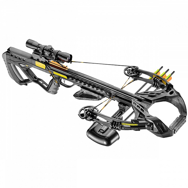Дизайн арбалета Ek Archery Guillotine X , просто восхитителен! Блоки на арбалете Interloper Ek Archery Guillotine X , вращаются на подшипниках, что сокращает износ осей и блоков в 2-3 раза (в зависимости от интенсивности использования), снижает нагрузку при натяжении тетивы, делает спуск плавным и мягким. Система виброгасителей и стабилизатор многократно увеличивают точность и кучность стрельбы. Рамочный приклад арбалета оснащен двумя захватами для ношения и перехвата оружия в боевое положение. В прикладе имеются скрытые ниши для хранения наконечников для стрел и ключей для разборки оружия. Направляющая арбалета выполнена из высокопрочного анодированного алюминия. Планка-weaver установлена в передней части, под направляющей. Колодка изготовлена из сверхлегкого композитного материала по технологии «Silent-tech». Технология плеч «Quad-Limbs» обеспечивает особую прочность конструкции. Плечи изготовлены из сверхпрочного углепластика. Комплектация: - кивер для 6ти болтов (стрел) - 3 углеродные 20" стрелы - Оптический прицел фиксированной кратности 4х32 - Заплечный ремень - Ручной натяжитель тетивы - Воск для тетивы