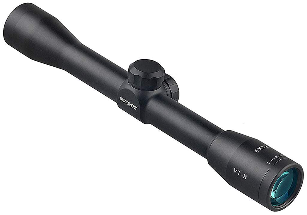 Оптический прицел Discovery серии VT-R с постоянной кратностью 4 и диаметром объектива 32 мм. Диаметр трубки прицела 25.4 мм.