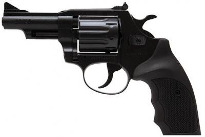 Револьвер под патрон Флобера Alfa 431 3' (вороненный, пластик) очень красивая и популярная модель калибром в 4 мм. Револьвер представлен в черном цвете, цвете вороньего крыла, с очень удобной, практичной, пластиковой рукояткой. Особенностью данной модели является наличие регулируемого прицела , в виде целика и мушки. Стальной нарезной ствол имеет длину 76 мм и обеспечивает точную стрельбу. Общая длина револьвера 201 мм при весе 760 грамм. Стальной барабан вмещает 9 патронов и перезаряжается методом откидывания в сторону. Начальная скорость выстрела патроном Флобера достигает 180 м/с .