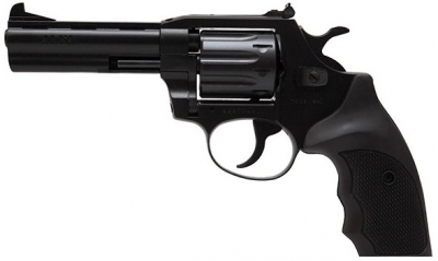 Револьвер под патрон Флобера Alfa 441 4' (вороненный, пластик) модель, набирающая особую популярность в Украине. Качество и надежность -девиз чешкой фирмы Alfa. Данная модель - это улучшенная копия Alfa 440, из улучшений добавлена возможность регулировки прицельных приспособлений, которые представлены в виде прицельной планки и мушки.Рукоять выполнена из высококачественного пластика и идеально лежит в руке. УСМ и 9-ти зарядный барабан сделан из стали,что значительно повышает срок эксплуатации револьвера. Скорость пули при выстреле достигает 180м/с. Вес револьвера-860 грамм, общая длина-231 мм, а длина стального ствола с нарезами-101 мм. Тип используемых пуль- патроны Флобера. Калибр данной модели 4 мм.